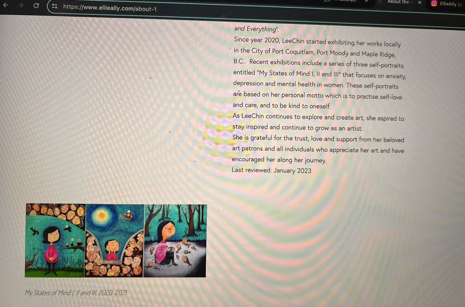 Since embarking on her artistic journey in 2020, LeeChin's work has captivated audiences across British Columbia, Canada, gracing spaces in Port Coquitlam, Port Moody, and Maple Ridge. Beyond her exhibitions, LeeChin crafts an enchanting collection of art merchandise, including stickers, origami, bookmarks, and greeting cards, each piece a testament to her unique vision.