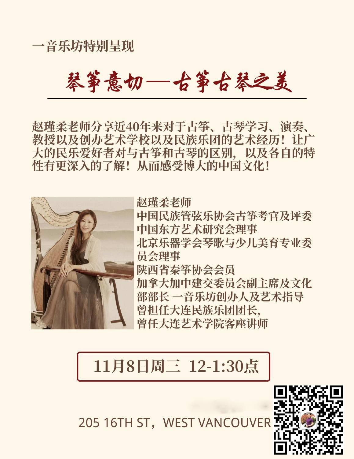 Embark on a captivating journey around the world. With over 40 years of expertise, the famous Chinese folk music artist, Jinrou Zhao, will enchant you with the timeless sounds of the Chinese zither and the seven-stringed zither, sharing tales and melodies from various corners of the globe.